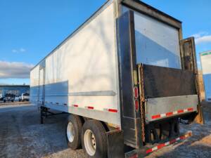 Quantity of (2) 2011 model Strick 36′ beverage delivery trailers. 102” wide x 12’6” OAH, 3/8” SS pick up coupler plate, Roll-up rear door, (2) curbside doors and (1) roadside door. Side door threshold plates and stainless steel side door framing, Steel scuff liner, translucent roof, ceiling scuff protection. 12” roof bow spacing, Rub rail on HD 1” FRP side walls, 1.5” laminated hardwood oak floors, 8” crossmember spacing, Tandem axle spring suspension, 11R22.5 on alum. outer wheels, Maxon BMR55 Rail gates operational, 5500# capacity, S/P $ 15,000. each